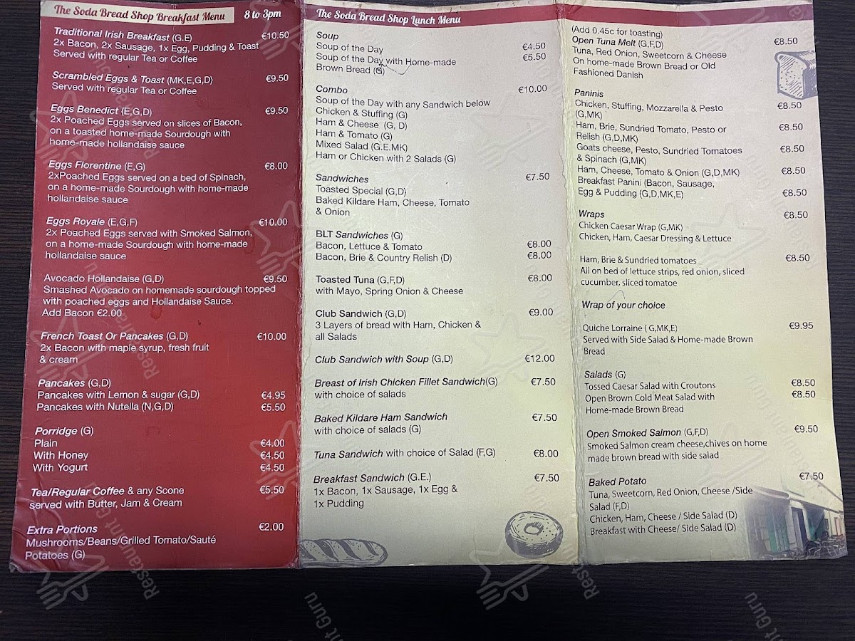 The menu at The Soda Bread Shop And Tea Rooms offers a delightful blend of comforting classics and creative twists. For breakfast or brunch, the French Toast is a must-try, featuring perfectly golden-brown slices served with a choice of toppings, bringing a balance of sweetness and warmth. Their signature teas are a standout, especially when paired with a smooth and aromatic Chai Latte, which offers a spicy, rich flavor that perfectly complements the café's cozy atmosphere. For dessert lovers, the Biscoff Cheesecake is an irresistible treat, with its creamy texture and the distinct, caramelized flavor of Biscoff biscuits. Whether you're stopping in for a quick tea or enjoying a leisurely meal, the thoughtfully crafted menu ensures a satisfying experience every time.